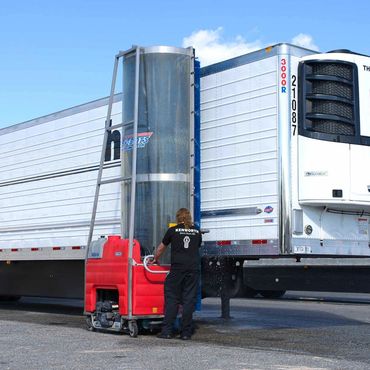 A custom trailer allows distributors and contract washers to transport this and other suitably equipped Wash-Bots models to be used for demos or