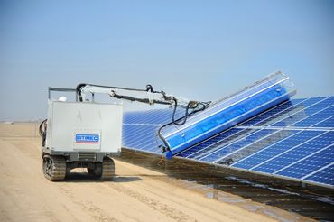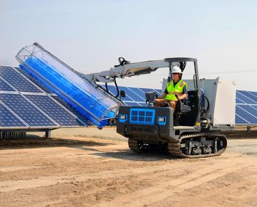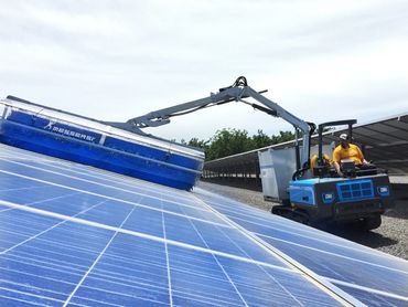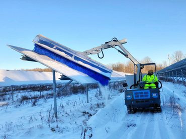 is designed to wash large ground mount PV panel arrays affordably. It is ideally positioned to help O&M’s optimize their return on multi-million dollar plant investments. With a wash speed of 80 feet (25 meters) per minute and four brushes from 6′ to 13’9″ in length, one operator can effortlessly wash 12,000 solar panels per 8 hour shift, with only 4,500 gallons of water.